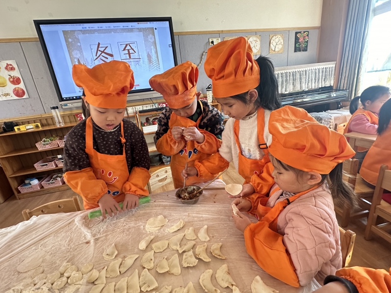 冬至到了,幼儿园洋溢着团圆的氛围。孩子们学习擀皮、包馅,亲手捏出一个个饺子。在动手实践中,他们锻炼了手部协调能力,更深刻感受到了“冬至大如年”所蕴含的家庭温情与文化传承。
