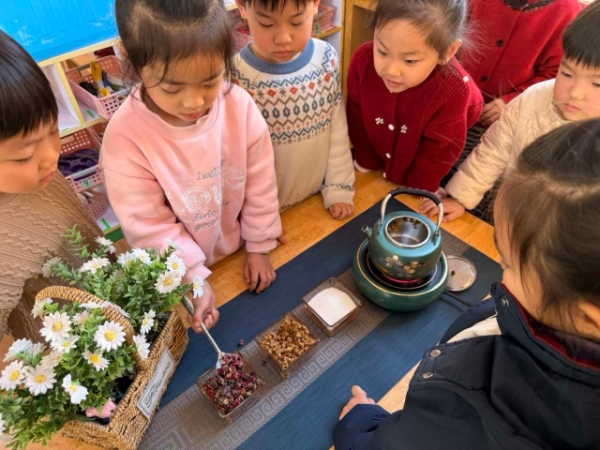 小寒之际,活动更添一份雅趣。看,孩子们正在调配属于自己的冬日暖茶!他们熬姜枣茶、泡梅花茶,观察食材在热水中缓缓舒展、释放香气。这次实践既是对节气饮食文化的感知,也是一次宁静的感官之旅。大寒恰逢腊八,孩子们一同腌制腊八蒜、熬煮腊八粥。在扑鼻的蒜香与粥甜中,孩子们感受到了辞旧迎新的节庆氛围。