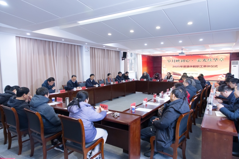 1月19日下午,南阳师范学院2025年度教职工荣休仪式在办公大楼一楼东会议室举行。校党委书记张宝锋、副校长王岩出席,2025年度退休教职工代表、相关二级单位负责人及青年教师代表参加。仪式由王岩主持。