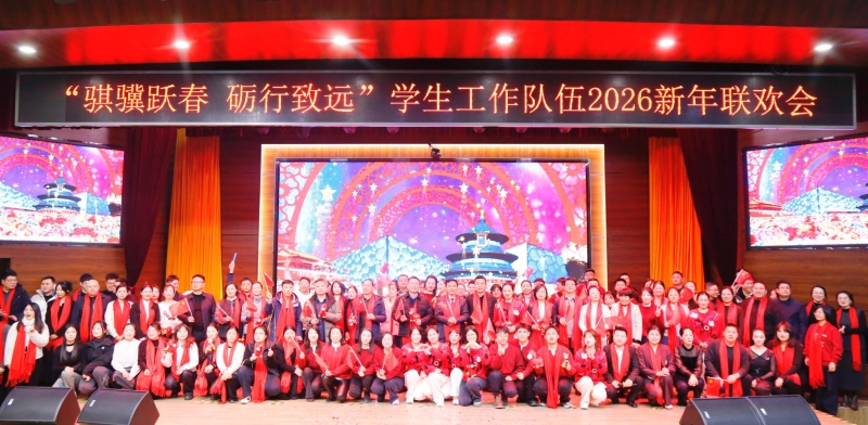 1月23日下午,以“骐骥跃春 砺行致远”为主题的2026年学生工作队伍新年联欢会在河南牧业经济学院龙子湖校区举行。这场汇聚全校学工精英的盛会,以18个精彩节目全景展现新时代育人工作者的卓越风采。校党委副书记姚毅、副校长边传周亲临现场,与全校新老学工同仁欢聚一堂,共庆新年。