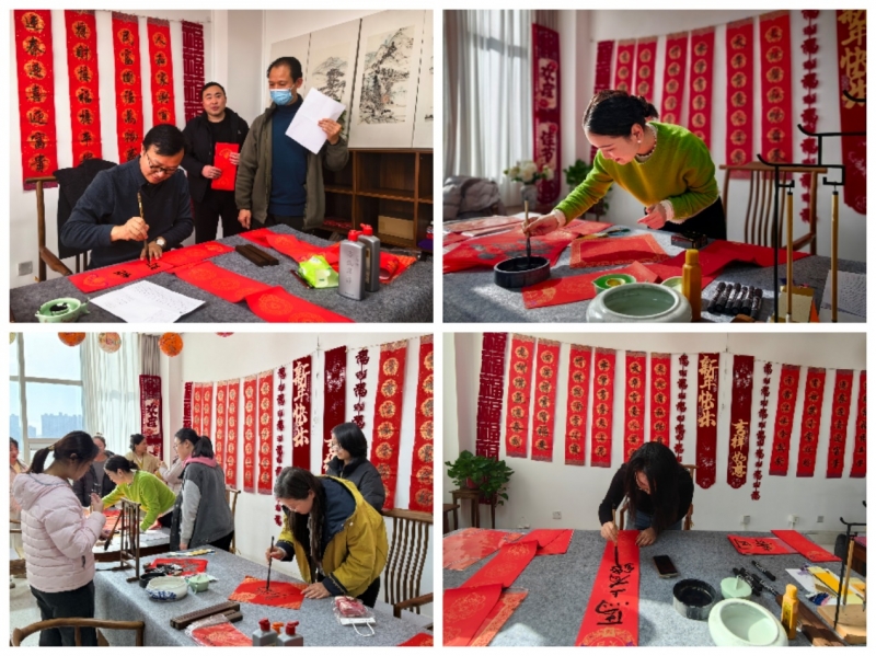 活动现场年味十足,大红灯笼、新春对联点缀其间,暖意融融。本次活动设置三大特色区域,为教职工带来了丰富多样的民俗体验。在春联书写区,教职工们或挥毫泼墨,或相互切磋,“马到成功”“龙马精神”“阖家幸福” 等吉祥话语跃然纸上,一笔一划间饱含对新春的期许和对生活的热爱,一幅幅饱含墨香的春联,既是传统文化的传承,也是最真挚的新春祝福。