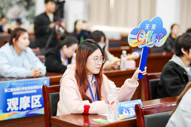 此次赛事旨将大赛打造成“促进人才供需对接的大平台”“服务毕业生就业的大市场”。将“企业心选团”与“天降offer”环节下沉至校赛阶段,不仅让职业规划从“书面知识”转向“岗位实践”,更让企业评委从行业视角,对选手的知识结构、实践能力及高校人才培养成效进行现场评价与反馈,形成了“展示-评价-改进”的闭环。决赛期间,230家企业组成的“心选团”,累计发出就业或实习offer意向3400余份,促进学生与企业之间实现“双向奔赴”。