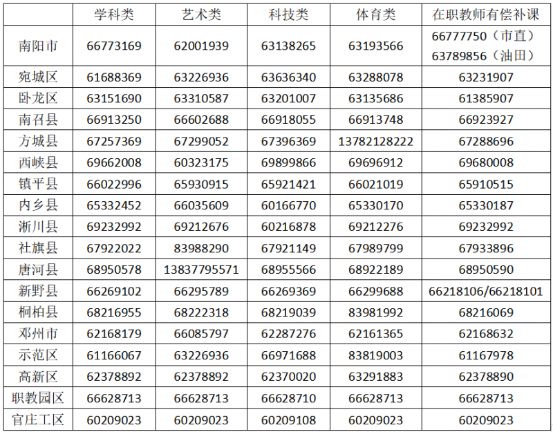 南阳市面向中小学生的校外培训咨询举报电话