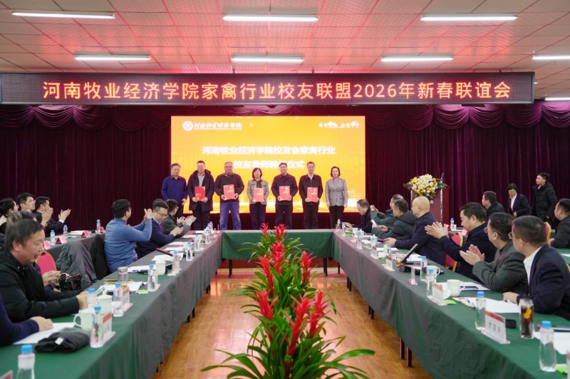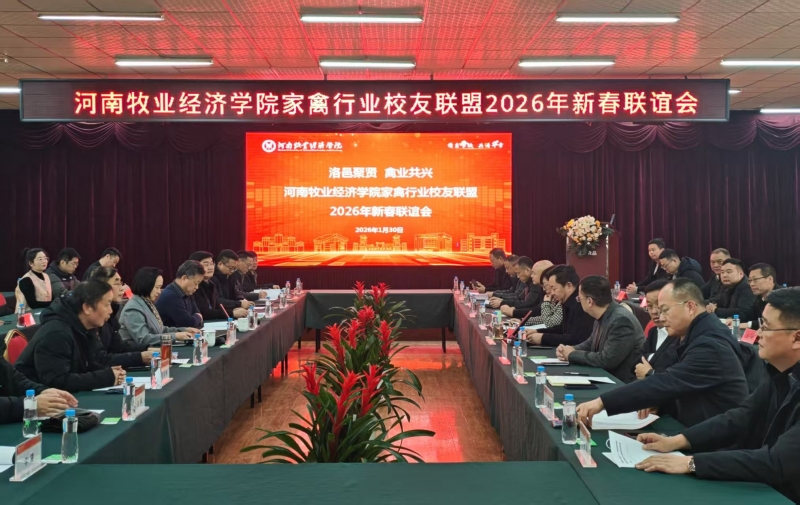 岁寒情暖,古都迎春。1月30日下午,河南牧业经济学院家禽行业校友联盟主办、洛阳正大食品有限公司承办的“洛邑聚贤,禽业共兴”2026年新春联谊会在洛阳举行。河南牧业经济学院校长尹新明、副校长席磊出席活动,与来自全国各地的五十余位家禽行业校友、特邀嘉宾及学校相关部门负责人齐聚一堂,共叙情谊、共谋发展、共绘蓝图。