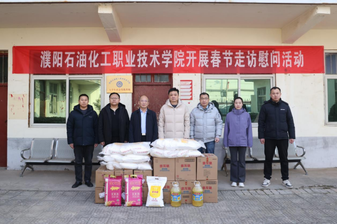 2月4日,濮阳石油化工职业技术学院党委书记李殿峰、班子成员高万明及驻村工作队成员、相关处室人员,赴帮扶村清丰县古城乡前囤上村开展春节走访慰问活动。清丰县委政法委书记杜少华、古城乡党委书记杨震、管区书记乔建培、前囤上村支书叶雪强出席活动。