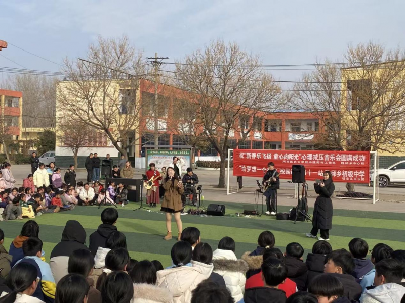 新春将至,暖意渐浓。为缓解乡村师生学习工作压力,营造积极健康的校园氛围,近日,河南医药大学驻延津县中魏邱村工作队在魏邱乡初级中学举办“新春乐飞扬 童心向阳光”心理减压音乐会。