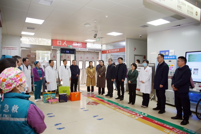 走访慰问中,校领导为在岗教职工、一线医务人员发放了慰问品,并代表学校向他们及其家人致以新春的美好祝福。校长张祎捷在慰问一附院时,对全体一线医护人员坚守诊疗岗位、守护群众生命健康的敬业精神给予高度肯定,她指出,医护人员是人民健康的守护者,春节期间大家放弃与家人团聚的机会,坚守临床一线,用专业与坚守践行医者仁心,用责任与担当筑牢全市人民的健康防线,学校对此表示衷心的感谢和崇高的敬意。张祎捷叮嘱大家,在全力做好医疗服务、守护群众健康的同时,要合理安排作息、注重自身防护,劳逸结合、保重身体,相关部门要切实做好服务保障工作,全力解决一线医护人员的后顾之忧,让大家安心值守、暖心过节。声声问候暖人心,句句嘱托鼓干劲。在岗医护人员深受鼓舞、倍感温暖,纷纷表示,新的一年将不负学校嘱托,坚守岗位、履职尽责,以更加饱满的热情、更加务实的作风、更加专业的能力,做好医疗服务、值班值守等各项工作,践行医学教育与医疗卫生工作者的初心使命,为学校高质量发展和守护人民群众生命健康贡献全部力量。