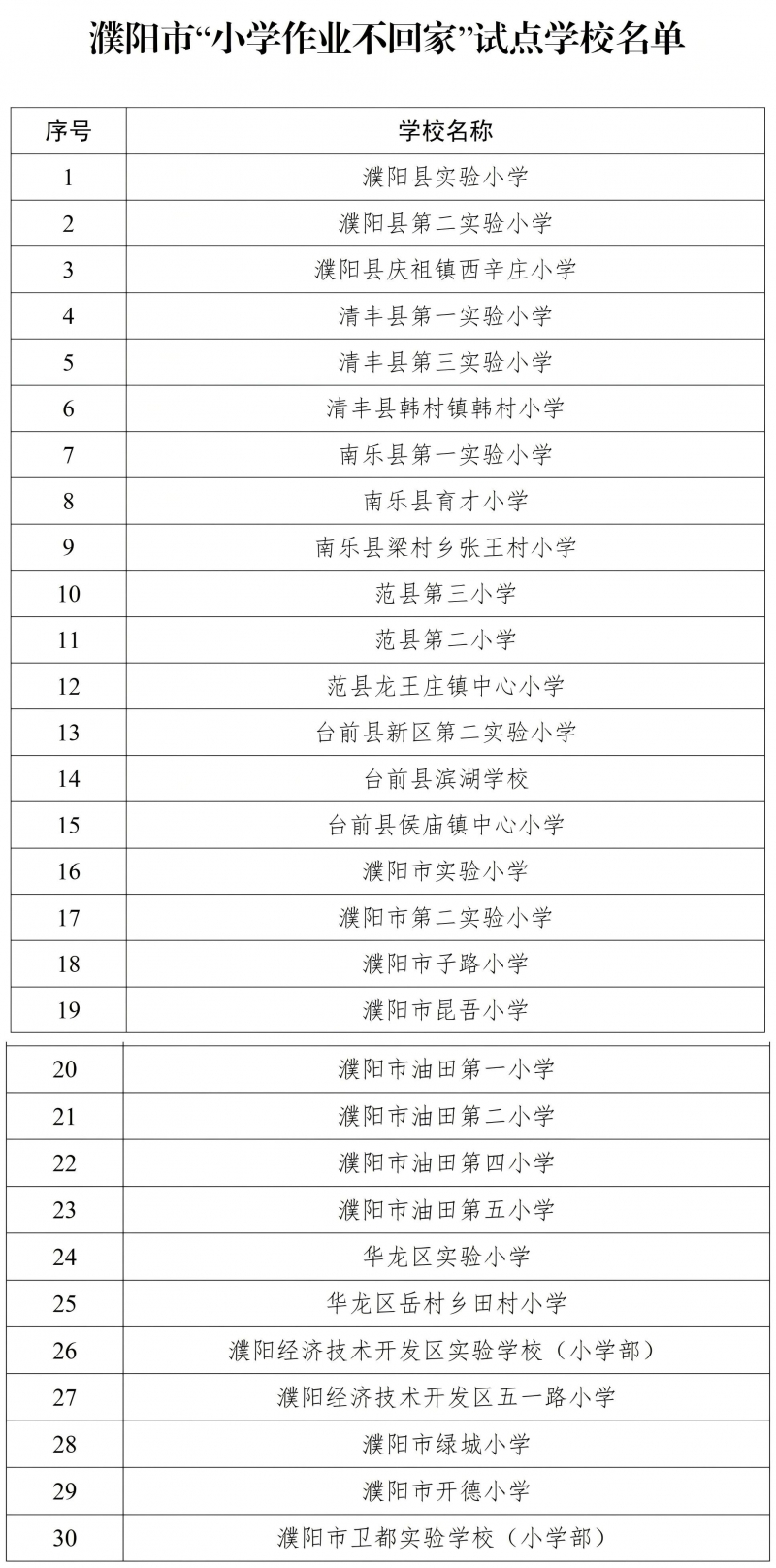 为深入贯彻落实国家“双减”政策,统筹推进“双减”工作与教育教学质量科学提升,切实减轻小学生过重作业负担,促进学生健康成长、全面发展。近日,濮阳市教育局在全市30所小学部署开展“小学作业不回家”试点工作。