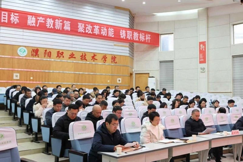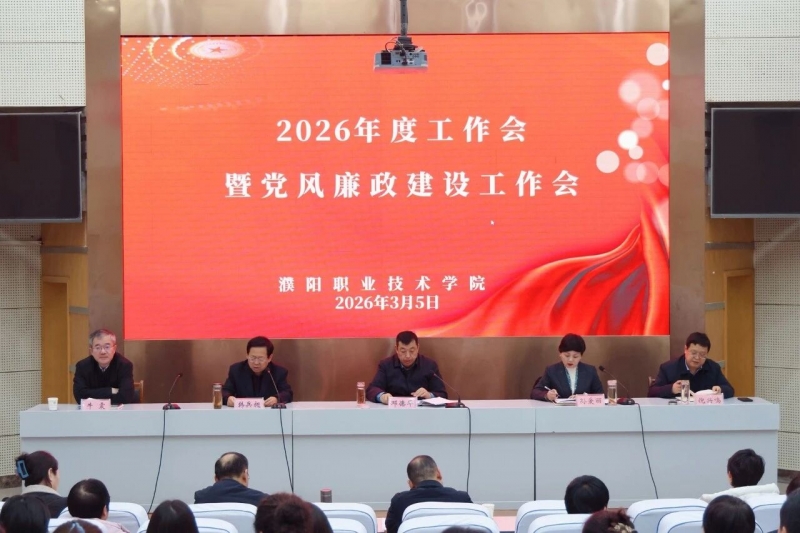 3月5日下午,濮阳职业技术学院在办公楼一楼学术报告厅召开2026年度工作会暨党风廉政建设工作会。校领导邓德华、孙爱丽、倪兴鸣、牛震,濮阳开放大学党总支书记王原璞、校长张军出席会议,全体正科级以上领导干部参加会议。副校长韩兵昶主持会议。