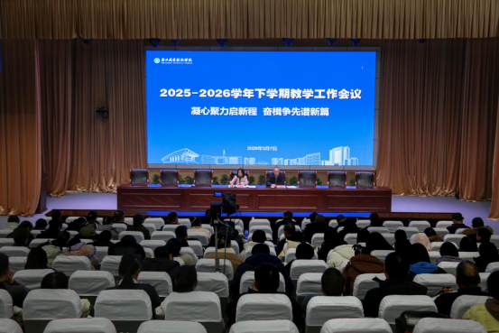 凝心聚力启新程,奋楫争先谱新篇。3月7日下午,郑州职业技术学院召开2025-2026学年下学期教学工作会议。副校长王晓峰出席会议并讲话。教务处全体人员,各二级学院院长、副院长、教研室主任及专业负责人参加会议。会议由教务处处长常秉琨主持。