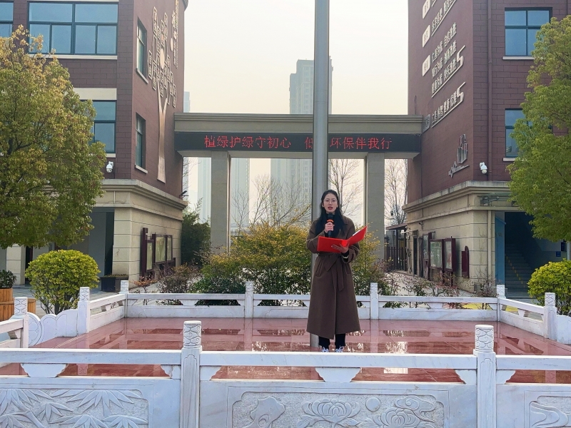 在雄壮的国歌声中,五星红旗冉冉升起,升旗仪式正式拉开帷幕。少先队员代表带来了《植树造林同践行 共绘绿色新画卷》的主题演讲。他立足新时代少先队员使命,号召全体同学从节约一张纸、种下一棵苗的小事做起,以实际行动践行环保初心。