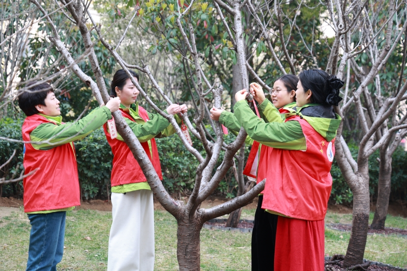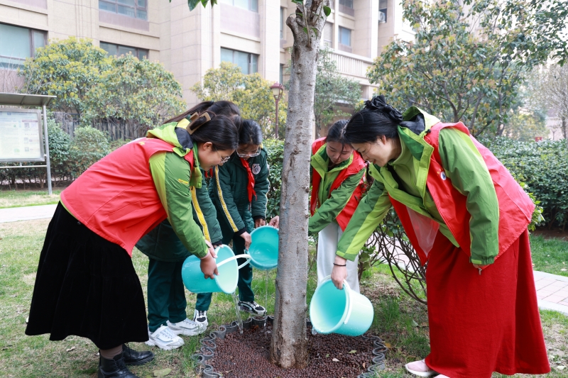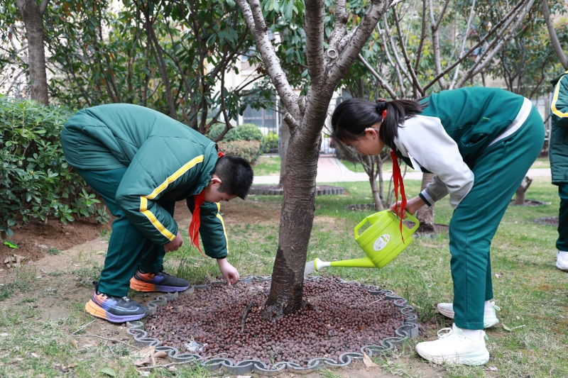 活动现场,社区工作人员生动讲解了树木知识、植树节意义,引导队员们尊重自然、爱护环境。随后,师生分工协作,干劲十足。大家提桶浇水,细心灌溉,让干涸的根系汲取春的滋养;手持工具,修剪枯枝,梳理树形,助力树木健康生长。躬身劳作的背影,成为社区里一道温暖而明亮的风景。活动尾声,队员们将亲手制作的“护绿心愿卡”轻轻挂上枝头,许下与绿树共成长的美好心愿。