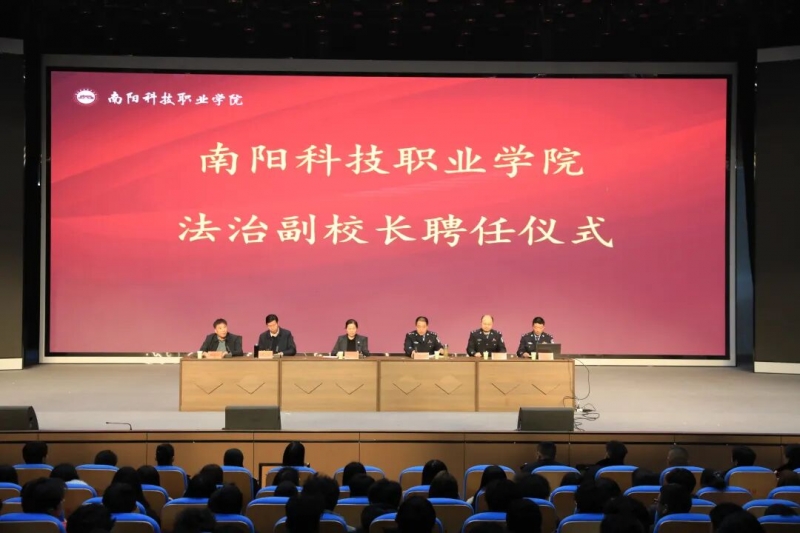 为深入学习贯彻习近平法治思想,落实立德树人根本任务,强化法治校园、平安校园建设,提升师生法治素养与反诈防骗能力,3月10日下午,南阳科技职业学院在星海艺术厅举行法治副校长聘任仪式暨反诈专题报告会。校长郭淼,副校长邓年令、刘彦、各处室及各学院负责人、辅导员、师生代表参会,活动由副校长邓年令主持。