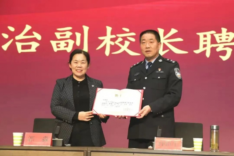 聘任仪式上,副校长刘彦介绍了受聘法治副校长邓州市公安局党委副书记、政委、一级警长孙恒生的专业履历与工作内容。校长郭淼为受聘法治副校长颁发聘书。