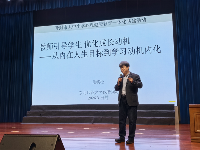 启动仪式后,东北师范大学心理学院院长盖笑松教授为与会人员进行专题培训。他从辨析“成功”与“成就”入手,深入阐述了“健康第一”的育人理念,引发强烈共鸣。求实小学心理健康教师吕小兵说:“盖教授把心理健康教育理论和新时代学生心理健康现状紧密连接,为心理发展辅导送上‘锦囊’。针对性强,通俗易懂,给人豁然开朗的感觉。”开封市第三十一中学校长杨俊红说:“讲座让我对引导学生优化成长动机的心态与内在人生目标等有了更深刻的思考,为不同学段心理健康教育的目标与重点提供了理论与实践指引。”