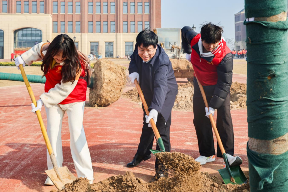 “植树既是践行劳动教育的生动课堂,更是厚植爱校情怀的实践。”河南师范大学校长郭海明在科技创新港校区植树活动现场与同学们亲切交流,“科技创新港是学校‘双一流’创建的重要支撑,更是同学们成长成才、追梦筑梦的重要平台,希望同学们以主人翁姿态主动参与校园建设,将对校园的热爱融入日常、见于行动,让师大成为大家成长路上的温暖港湾、一生的美好牵挂。”