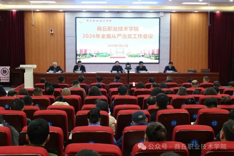 3月13日,商丘职业技术学院在明德楼录播厅召开2026年全面从严治党工作会议。校党委书记、校长薛明志,学校领导班子成员出席会议,校纪委委员、全体中层正副职、机关党委、离退休党委、各党总支纪检委员、特约监察员、学校纪委全体人员参加会议。会议由党委委员、副校长李春主持。