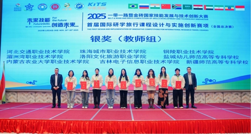 值得一提的是,项目负责人张功岭老师受教育部艺术设计指导委员会邀请主讲的非遗技艺传承专题报告,成功上线国家教育部智慧职教课程资源;在第八届全国数字创意教学技能大赛国赛激烈角逐中,张功岭老师凭借出色的教学设计与扎实的专业素养,从全国众多参赛队伍中脱颖而出,荣获全国二等奖;团队主要成员朱思冰老师与其他成员协同攻坚、奋勇争先,在2025“一带一路暨金砖国家技能发展与技术创新大赛首届国际研学旅行课程设计与实施创新赛项全国总决赛中,荣获教师组二等奖,学校也因赛事组织工作成效突出,被评为“优秀组织奖”。