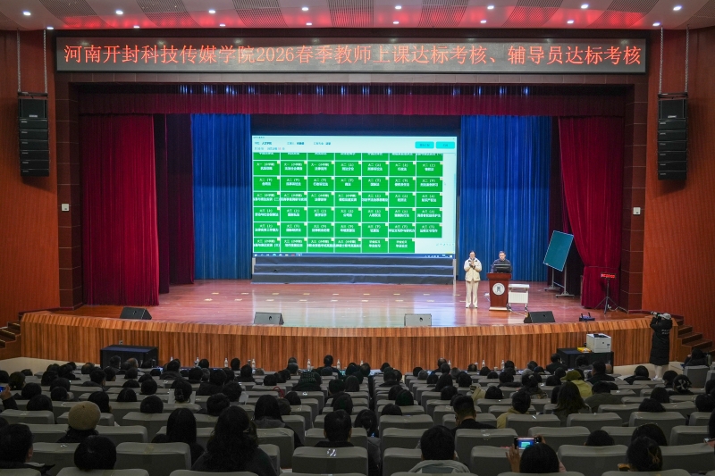 3月14日是新学期开学的第一个周末,河南开封科技传媒学院(以下简称“科传学院”)大礼堂座无虚席,科传学院2026年春季学期教师上课达标考核暨辅导员达标考核活动如期举行。来自13个二级学院的63名教师和5名辅导员依次登台,接受教学能力和育人水平的集中检阅。科传学院校领导、专业建设带头人、全体教职工现场观摩。