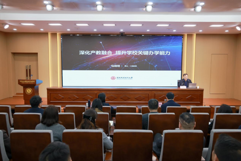 3月20日下午,河南应用技术职业学院特邀深圳职业技术大学原副校长马晓明教授作“深化产教融合 提升学校关键办学能力”专题讲座,相关校领导、全体中层干部、各教学部门骨干教师参加学习。讲座由党委书记闫俊山主持。