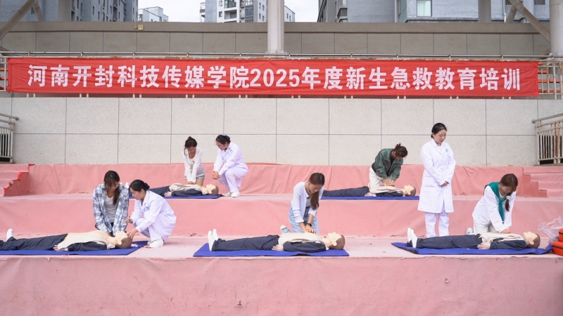 作为全国急救教育试点高校,河南开封科技传媒学院将心肺复苏(CPR)正式纳入体育教学核心模块,开展“急救开学第一课”,通过模拟人训练精准掌握按压深度与呼吸频率。在双校区均配备有自动体外除颤器(AED)设备,常态化开展急救技能培训,定期举办急救技能大赛,提升应急救护能力,已累计培养实操型急救志愿者数千人。近两年还联合开封市“120”急救指挥中心、红十字会,创新构建“理论讲授+模拟实操+竞赛考核”三位一体教学模式。我校学子在掌握游泳、急救等关键生存技能的同时,也深刻内化了“健康第一、生命至上”的价值理念。