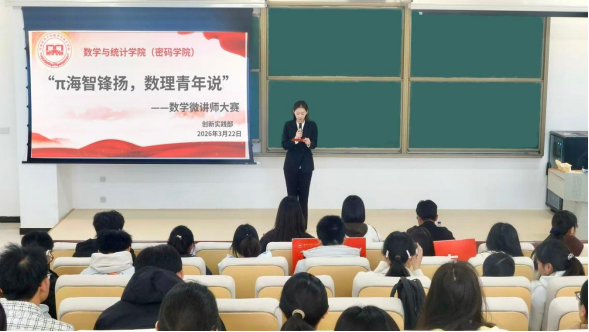 文化节期间,学院在创新港校区举办“π海智锋扬,数理青年说”数学微讲师大赛,以赛促学、以赛促练,着力培养学子讲好数学故事、传播数学文化的能力,助力学生成长为兼具专业素养与表达能力、能让数学文化活起来的时代新人。