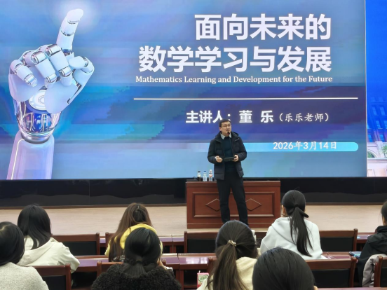 学院还在创新港校区邀请B站11万+粉丝的UP主董乐老师,带来《面向未来的数学学习与发展》科普讲座。“数学不仅是抽象的公式与定理,更是拓宽人类知识边界、助力时代发展的重要支撑。希望同学们勤学善思、勇于探索,把数学理想融入时代发展,用专业本领服务国家需求。”他结合前沿学术成果,阐释了数学在密码学、人工智能、农业金融等领域的核心应用,解析基础数学的实用价值与学科美学。