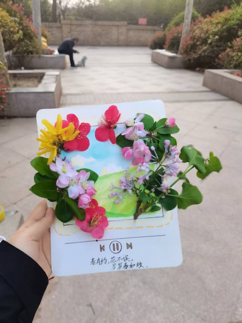 此次户外真花手工实践活动,不仅为学生提供了展示自我、挥洒创意的平台,培养了同学们的审美情趣与艺术素养,更让他们在创作中亲近自然,感受美好,热爱生活。学生用童真的笔触描绘春日繁花,把春日的美好留在画纸上,藏进记忆里,在体验中成长,在快乐中收获