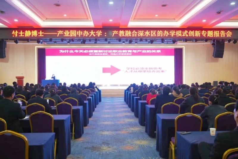 3月24日下午,郑州食品工程职业学院特邀首钢工学院信息技术产教创新联盟负责人、职业教育产教融合实践专家付士静博士在党建三楼报告厅作题为《产业园中办大学:产教融合深水区的办学模式创新——基于食品产业链的人才培养新范式》的专题培训。校长娄源功教授出席并为付士静博士颁发特聘证书,副校长刘扭参主持会议,全体教职工参加培训。
