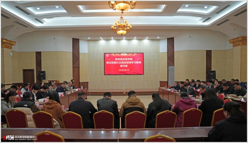 3月27日、30日,郑州西亚斯学院举办树立和践行正确政绩观学习教育读书班。学校党委书记牛晓玉主持并讲话,校领导、全体中层管理人员参加学习。