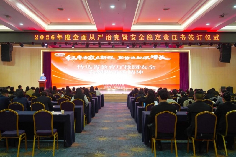 3月31日下午,郑州食品工程职业学院举行2026年度全面从严治党暨安全稳定责任书签订仪式。会议以压实全面从严治党与安全稳定工作责任为核心,进一步凝聚思想共识、细化工作举措,为该校高质量发展、持续健康运行筑牢政治根基、织密安全防线。校长娄源功教授出席并作重要讲话,副校长刘扭参主持会议,校党委委员、纪委委员,各党总支书记、党支部书记,全体中层干部及教师共同参会。