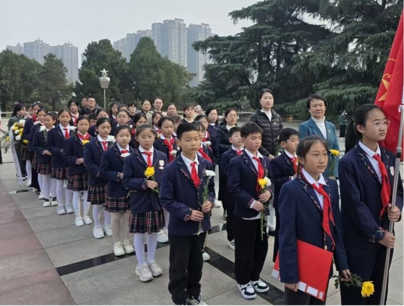 郑州航空港区外国语小学以“铭记英烈忠魂志 智创未来报国心”为主题,组织党员教师及学生代表赴郑州烈士陵园开展祭扫活动。师生们在肃立默哀、敬献花篮、诵读祭文、重温入队誓词、瞻仰纪念碑等庄严环节中,将对英烈的哀思转化为奋进动力。活动将红色基因融入教育全过程,引导学子在铭记历史中砥砺前行,立志以知识创新践行“报国心”,成为担当民族复兴大任的时代新人。