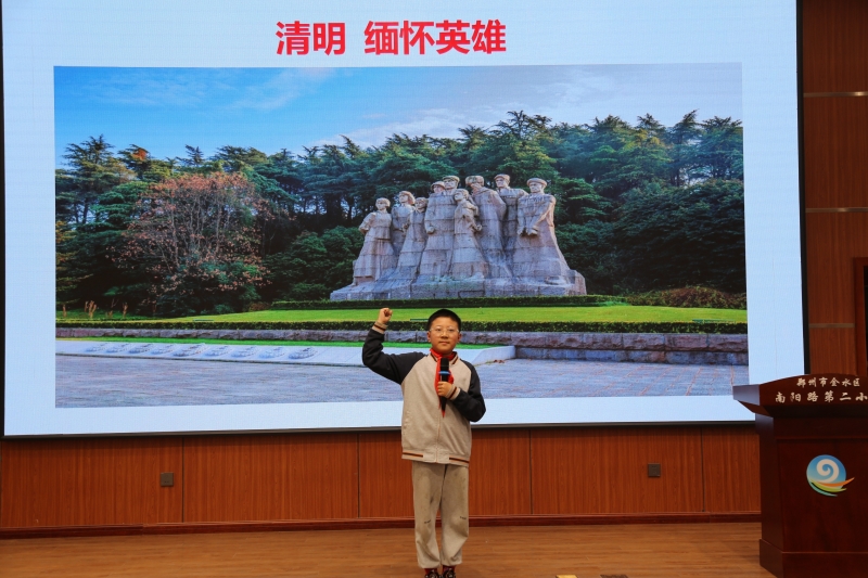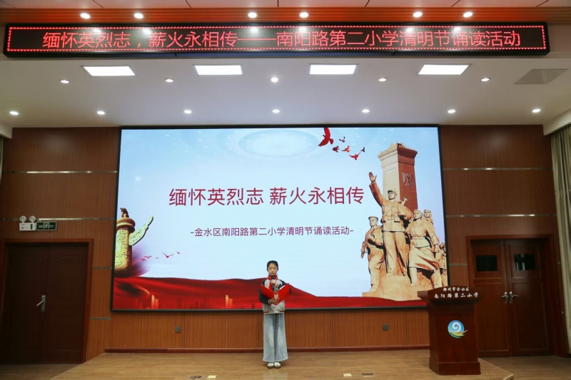 4月2日,郑州市金水区南阳路第二小学开展了主题为“缅怀英烈志 薪火永相传”的清明节诵读活动,将中华优秀传统文化、革命文化与思政教育深度融合,为学生带来一堂浸润心灵的“清明思政大课”。