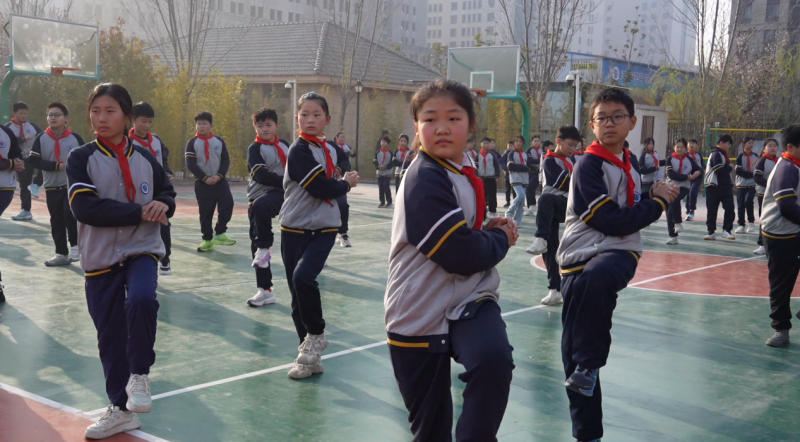 每天下午第二节课后是30分钟阳光大课间。学校以“少等多动”为设计理念,指定各班在指定场地活动。活动内容设计聚焦民俗传统游戏,根据学生运动素质发展关键期构建“入门—中级—高级”递进式闯关体系。