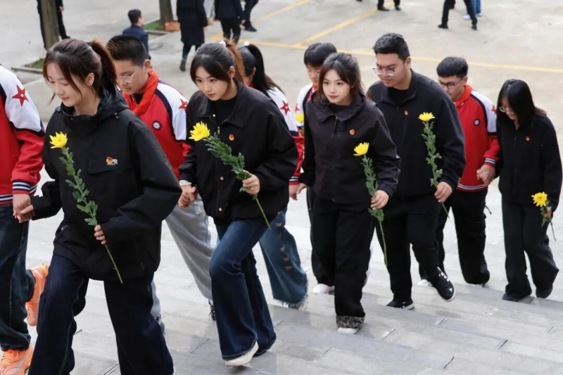 又是一年清明至,缅怀英烈寄哀思。为深入推进大中小学思政教育一体化建设,创新红色育人实践载体,充分发挥高校思政育人引领作用,郑州城市职业学院联动新密市市直第三小学,组织学校党员、共青团员代表,携手该校少先队员代表共赴烈士陵园,共同开展“缅怀先烈志·薪火永相传”清明祭英烈手拉手主题活动。