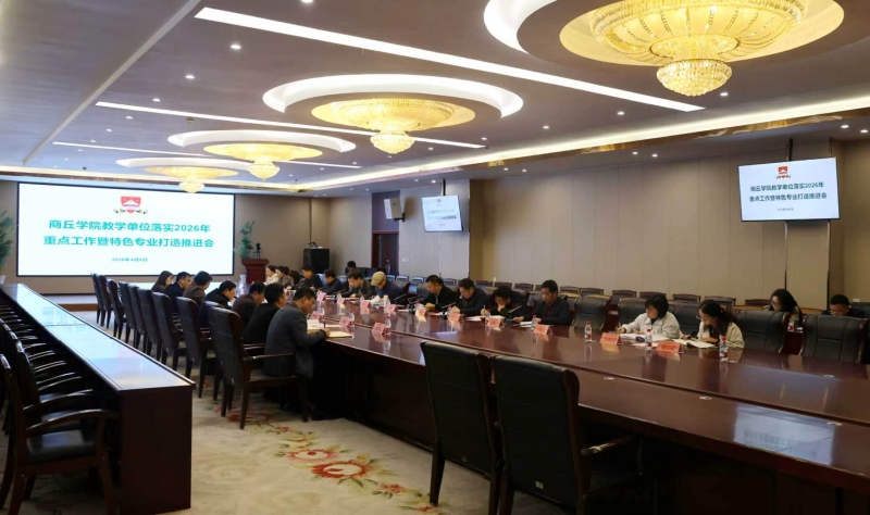 为进一步统一思想、明确任务,以特色专业建设引领学校高质量发展,4月8日,商丘学院在第一会议室召开落实2026年重点工作暨特色专业打造推进会。校长、党委副书记程印学、副校长潘一展出席会议。教务部、质量监测与评估部有关负责人及各二级学院院长、副院长参加会议。会议由潘一展主持。