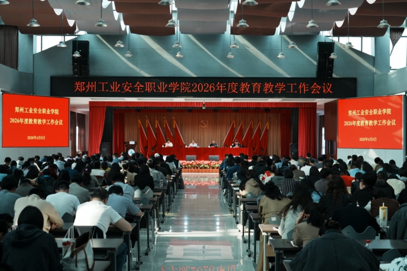 4月9日下午,郑州工业安全职业学院在新郑校区行政楼五楼报告厅召开2026年度教育教学工作会议。会议回顾总结2025年教育教学工作,分析研判形势,部署安排2026年重点工作。在校领导班子成员出席会议,全体中层干部,教务处、学生处全体人员,全体专兼职教师,全体专兼职辅导员,班主任及企业教学管理人员参加会议。会议由党委副书记王晓辉主持。