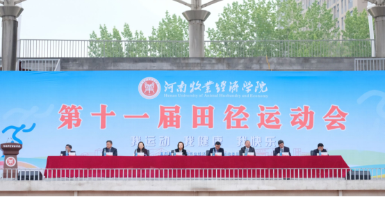 校长尹新明致开幕辞并宣布河南牧业经济学院第十一届田径运动会开幕。尹新明表示,体育强则国家强,国运兴则体育兴。河南牧业经济学院历来高度重视体育工作,始终把体育作为立德树人的基础工程,不断深化课程改革、完善设施条件、营造体育文化,推动“育体”与“育人”深度融合,实现了以体树德、以体启智、以体健美、以体促劳的综合育人成效。近年来,河南牧业经济学院体育事业蓬勃发展,师生健身氛围日益浓厚,各级赛事屡创佳绩,既为学校赢得了荣誉,更凝聚起奋勇争先、昂扬向上的精神力量!希望全体师生坚持“健康第一”教育理念,在体育锻炼中,享受乐趣、增强体质、健全人格、锤炼意志,在观赛助威中感受激情、收获成长!