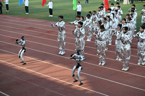 伴随着激昂的运动员进行曲,国旗护卫队、校旗队、彩旗队、裁判员代表队、18个学院方队和8个教工工会方队依次入场。在方队入场环节,卡洛理工国际学院师生方队与41名爱尔兰研学营学生携手亮相,中外学子并肩同行、意气风发,展现出开放包容的国际风采。来自爱尔兰的青少年们带着独有的浪漫与热忱,在田径场上表演独具特色的传统舞蹈,为运动会增添了一抹跨越国界的文化亮色。
