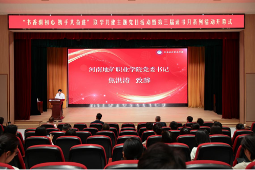 为深入贯彻党的二十大关于深化全民阅读活动的重要部署,落实《全民阅读促进条例》,扎实推进学习型党组织与书香校园建设,河南地矿职业学院于4月14日举行联学共建主题党日暨第三届读书月系列活动开幕式,校党委书记焦洪涛出席活动并致辞,学校部分专兼职教师及学生代表共同参会,活动由副校长张红兵主持。