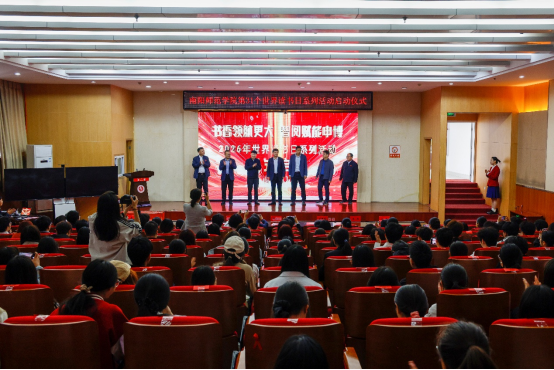 4月14日,在第31个世界读书日来临之际,南阳师范学院2026年“世界读书日”系列活动启动仪式在图书馆举行。副校长刘金江出席仪式并致辞。活动由图书馆主办,党委宣传部、校团委、学生处、信息化管理中心等单位协同开展,各学院师生代表参加活动。