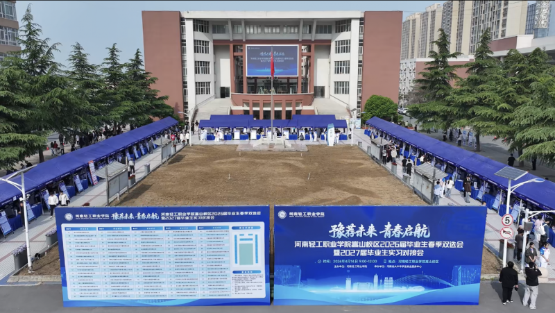 4月14日上午,由河南轻工职业学院联合河南省大中专学生就业服务中心共同主办的“2026届毕业生春季双选会暨2027届毕业生实习对接会”在嵩山校区正式启动。本次活动以嵩山校区为首发站,后续将在园田、鑫苑两个校区接续举办,旨在为广大学子搭建优质高效的实习就业“直通车”,全力助推毕业生更高质量、更充分就业。