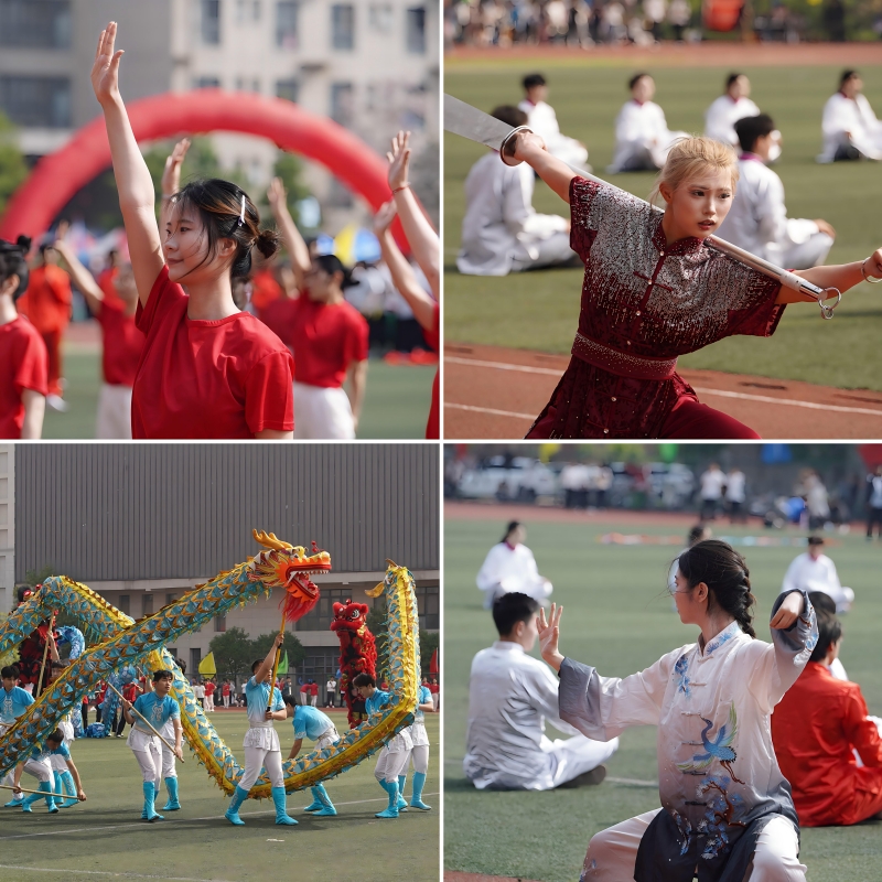 开幕式上,一场融合传统与现代的文艺演出将现场气氛推向高潮。啦啦操《跃动青春》活力开场,大型排舞《健康科传》气势恢宏,武术体操《尚武承风》刚劲有力,八段锦刚柔并济,《彩韵漫舞》《气贯长虹》轮番上演,舞龙舞狮精彩亮相,龙狮少年队活灵活现,巨龙翻飞、雄狮腾跃。整场演出积极响应“十五五”健康中国号召,将传统养生智慧与现代体育精神相融合,充分展现了科传学子昂扬向上的青春风貌,为运动会注入了满满健康动能。