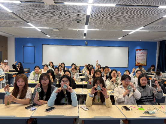 风铃是中华传统雅趣器物,寓意平安吉祥、清风送福。会计学院组织传统风铃手作活动,同学们精心选材、编织绳结、装饰挂件,将东方美学与青春巧思融入其中。一绳一结、一坠一铃,不仅制作出清脆悦耳的风铃,更在动手间感受传统器物之美,让古韵新风在校园里轻轻回荡。