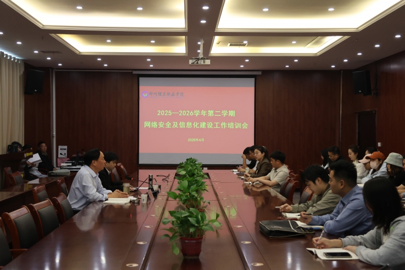 为进一步强化校园网络安全管理,规范网站运维与信息发布流程,提升信息化建设与运维能力,4月17日下午,郑州理工职业学院举办2025-2026学年第二学期首次网络安全及信息化建设专题培训会。党委宣传部、实训与信息管理中心负责人出席会议,各党总支、直属党支部宣传委员及各二级单位网站管理员参加培训。