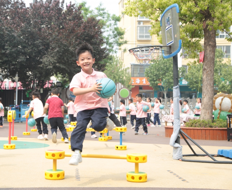2.篮球特色课程——让梦想在指尖跳跃飞扬。从滚球、抛接球的稚拙尝试,到运球、传球的日渐娴熟,再到投篮与3v3实战的自信从容,阶梯式篮球课程见证着孩子们的每一步成长。幼儿园在全国幼儿篮球操比赛中斩获金奖与特等奖。通过持续开展篮球教育活动,全面培养了幼儿团结互助、勇敢自信、直面困难的品质,为塑造“健康的中国娃”奠定了坚实的身体与心理基础。