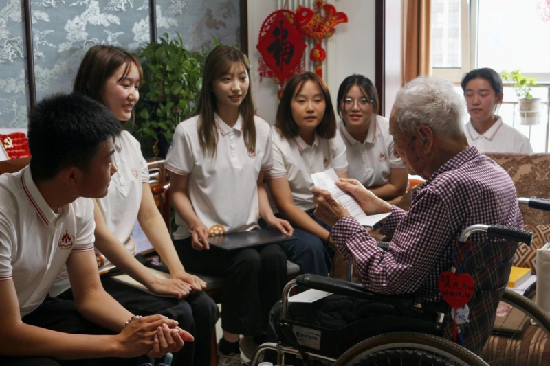 质朴有力的嘱托直抵人心。团队成员为老人送上鲜花与手写信,传递青年一代的崇敬与祝福。临别时,老人颤巍巍的身影里,军人的刚毅风骨依旧,让在场学子深受触动。