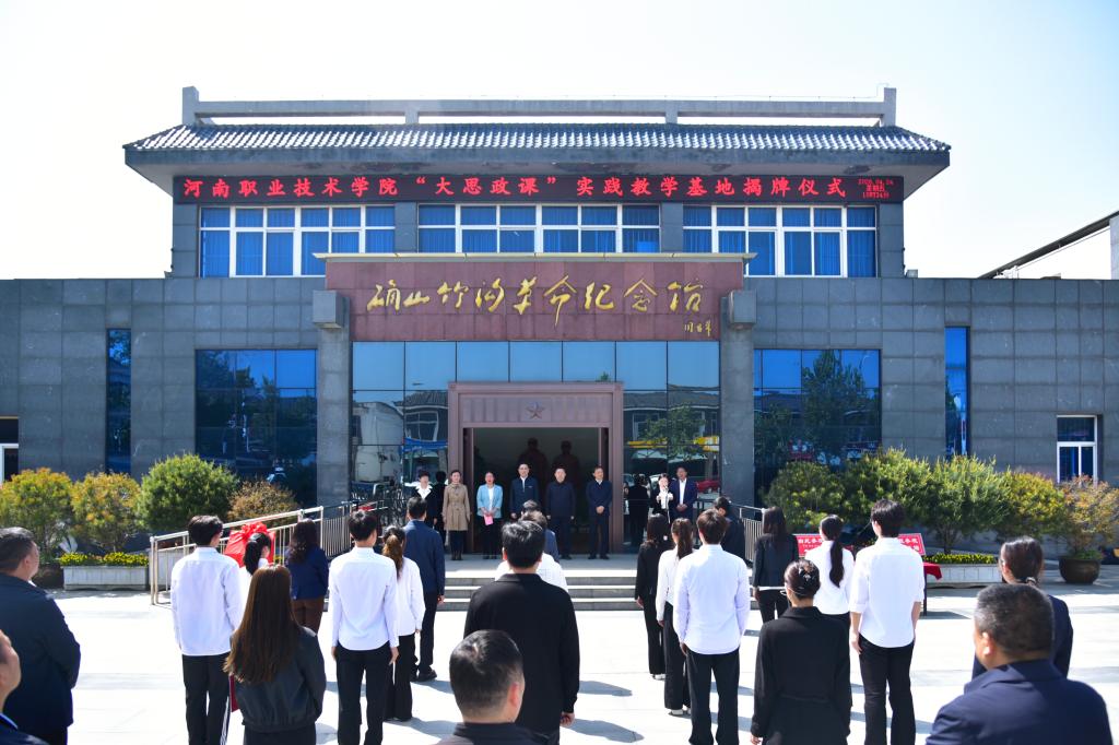 4月24日,河南职业技术学院与确山竹沟革命纪念馆共建“大思政课”实践教学基地签约揭牌仪式在竹沟举行。校党委书记厉励、确山县委书记路耕出席仪式并共同为学校“大思政课”实践教学基地揭牌。校党委副书记、工会主席田华,确山县委副书记吴玉冰等校地双方有关领导出席。仪式由确山县人民政府副县长王巧雨主持。