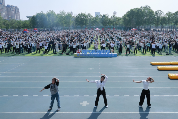 4月25日,河南师范大学在西校区塑胶田径场举行第二十届大学生心理健康宣传月启动仪式暨心理素质拓展活动。本次活动以“培育积极心态,绽放青春风采”为主题,现场乐曲欢快、氛围热烈,师生共同起舞,轻松活力的氛围迅速点燃全场。